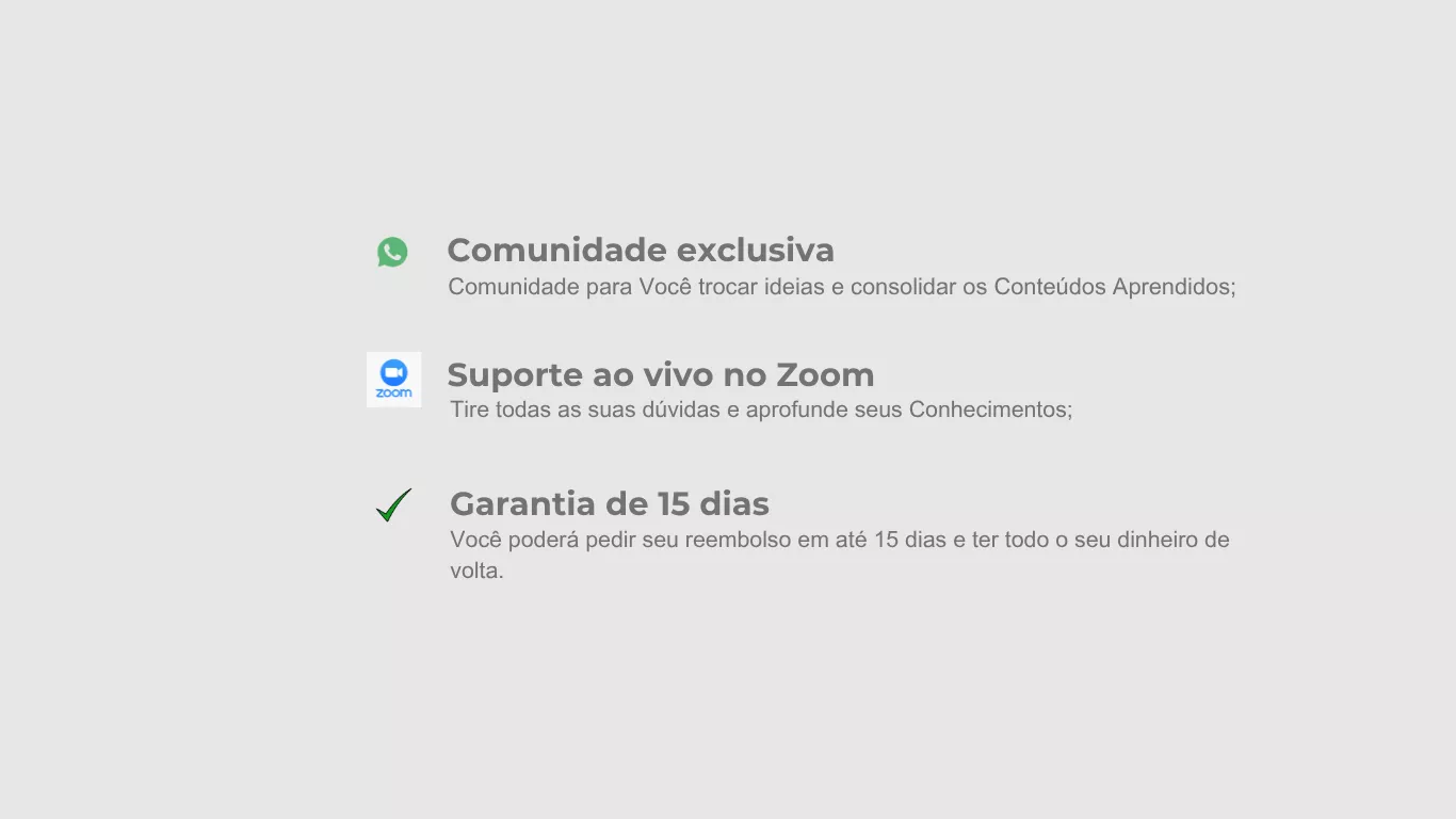 Você tem uma garantia incondicional de 15 dias. Se por qualquer motivo não gostar do conteúdo, basta enviar um e-mail e devolveremos 100% do seu investimento, sem questionamentos. O risco é todo nosso!